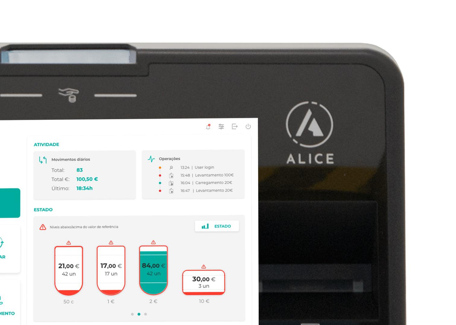 A ALICE não é uma mera solução de pagamentos automáticos. Nem é apenas um novo sistema a implementar no seu negócio. Mais do que uma máquina, é precisamente o elemento que falta na sua equipa. Cada uma das características deste sistema de pagamentos automáticos foi concebida para agilizar as transações com os seus clientes. Com a ALICE, pode contar com processos mais automatizados e muito mais simples e eficazes. E, acima de tudo, pode contar com o sentido de segurança e o tempo de que necessita para se dedicar ao que realmente pede a sua total atenção.