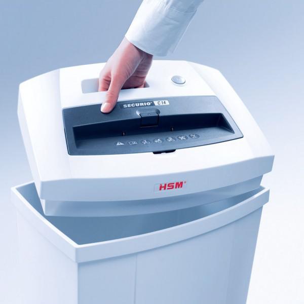 Destruidor de papel HSM Securio C14, Nível de segurança: P-2, Tipo de corte: Direito, Altura: 40.5 cm, Inversão automática em caso de encravamento de papel.
